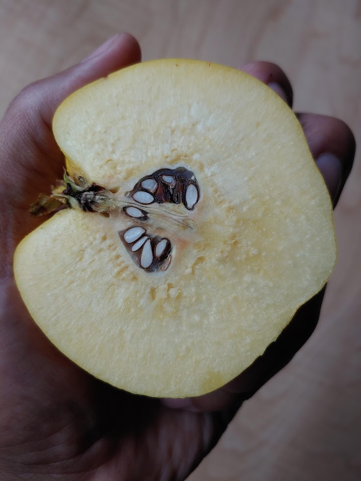And this also, has a very specific taste that I remember eating and enjoying many many years ago. Pretty cool how a flavor can transport you to a long ago time and place. Also the fruits themselves were super aromatic and smelled amazing. Kinda like pineapple. It was unexpected and welcome. All this to say that we will definitely be planting a Quince tree, and I can't wait to get some fruit off of it, many years from now haha.